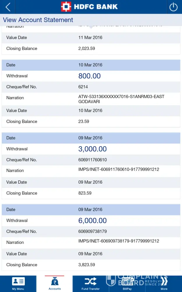 I was holding an old account with HDFC bank Account No: [protected] which have a Demat Account Linked with Demat Account No: [protected], I didn't used this account till date. I tried twice to close the above mentioned Salary Account and Demat Account and i got the reply from Techno park Branch, that we are unable to close this account since demat account is "unable to close". Now they are Holding an amount of 2881.89 from my Alternate Salary Account: [protected], Today I was trying to pay my Credit card bill and it showed that the account have no sufficient money to pay your Credit Card bill. As a customer i tried to close my Demat Account twice 2 years before and its rejected as confirmed by Bank officials. It might be the problem of the bank staffs that caused the rejection of my request to cancel demat account, then why they are holding my alternate account Funds.