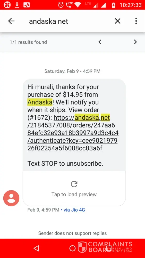 Hi, I have ordered a smart watch on 9 th feb 2019 through my hdfc credit card ending with 2266 with an amount of 1034.99 rupees with andaska.net online shopping. But I couldn't get my item till now also I couldn't track the status also. Please help getting my refund back. My ordre number is #1672. Their official web adress: http://andaska.net...thank you