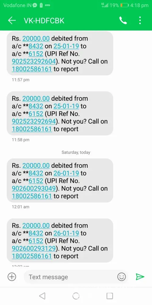 She asked me to change the application ipin and assured me that everything will get secured and everything will get secured. I did change the application ipin but still at night 11:58pm, 11:59pm, 12:01am and 12:02am there has been 4 transactions took place back to back for Rs 20000 each. So I lost Rs 80000 in total. Later I blocked my each and every service instantly over the phone of the bank.