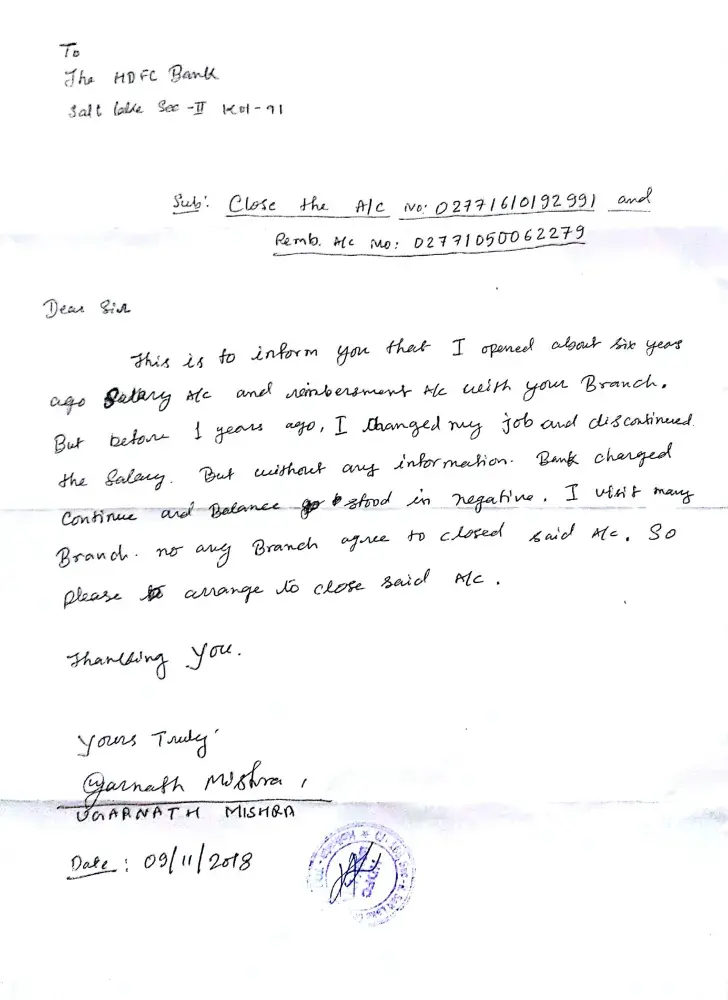 To close my salary a/c I visit about two banch, but first branch refuse to close the a/c and said pls contact your home branch. Secondly I visit Dalhousie kolkata branch but refuse to say that balance go to negative and visit your home branch. home branch is too distance from my home but I taken a leave and went to search home branch. finanly goted. but home branch also refuse to close the same. After all submit salary a/c closing letter and back to home as attached herewith. but still no any action taken and response given to us. I am so disappointed from your service.