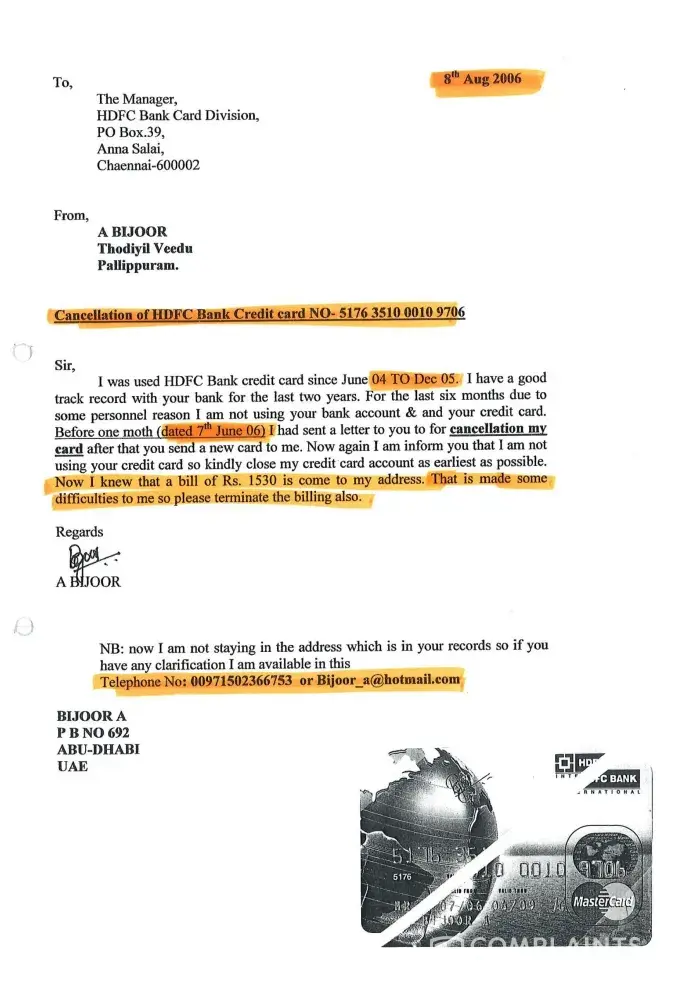 Reference to my credit card 517635xxxxx9706 in your bank since 2004. The card has been used for the period of 2004 to 2006. After this used years, I got a residency permit in uae for the employment. Consequently, I requested to you the cancellation of card. Then I received a reply from the customer care, the email was shown your card status changed as a free of life time and there will be no any annual membership fee. Similarly, informed the card cancellation not required.