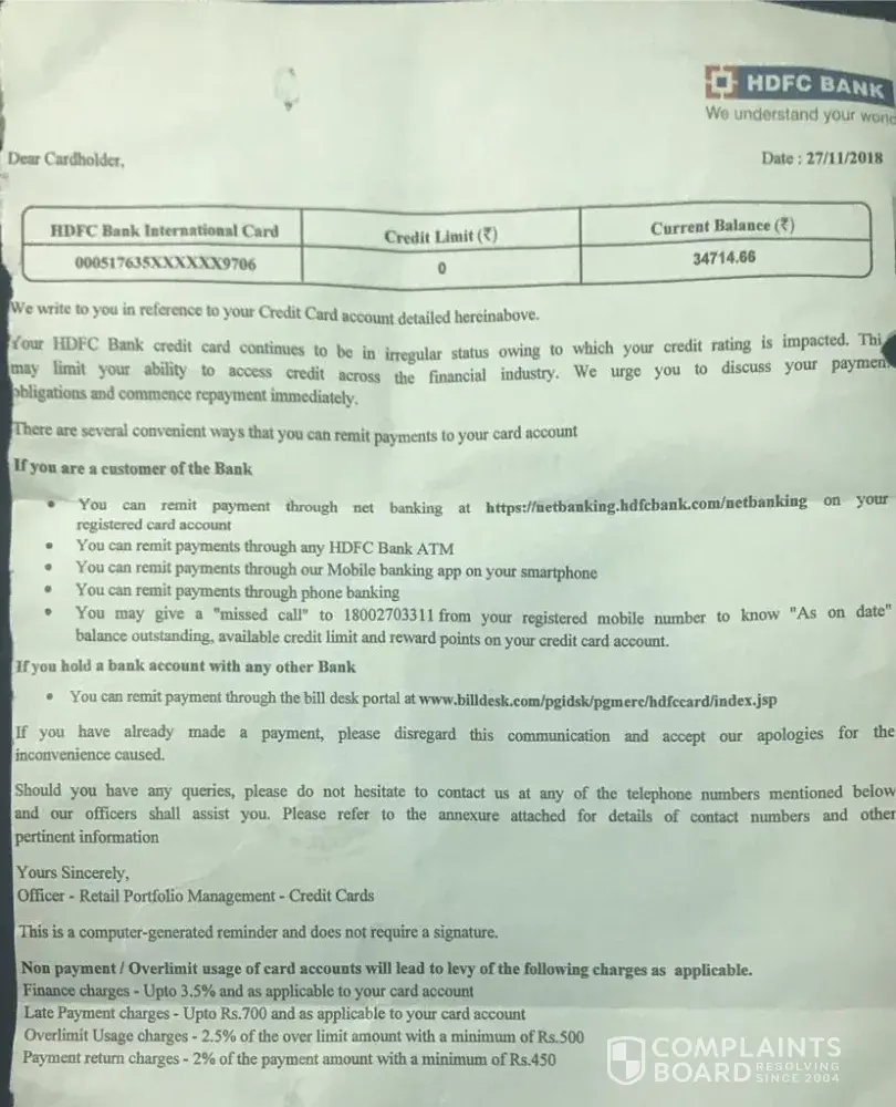 It seems that you at hdfc instead of giving due concern & care to customers, if sometime they fail to maintain the balance in their account number due to some unavoidable exigencies, you go on charging then uninterruptedly which no doubt mar their confidence & esteem to continue with you at hdfc.