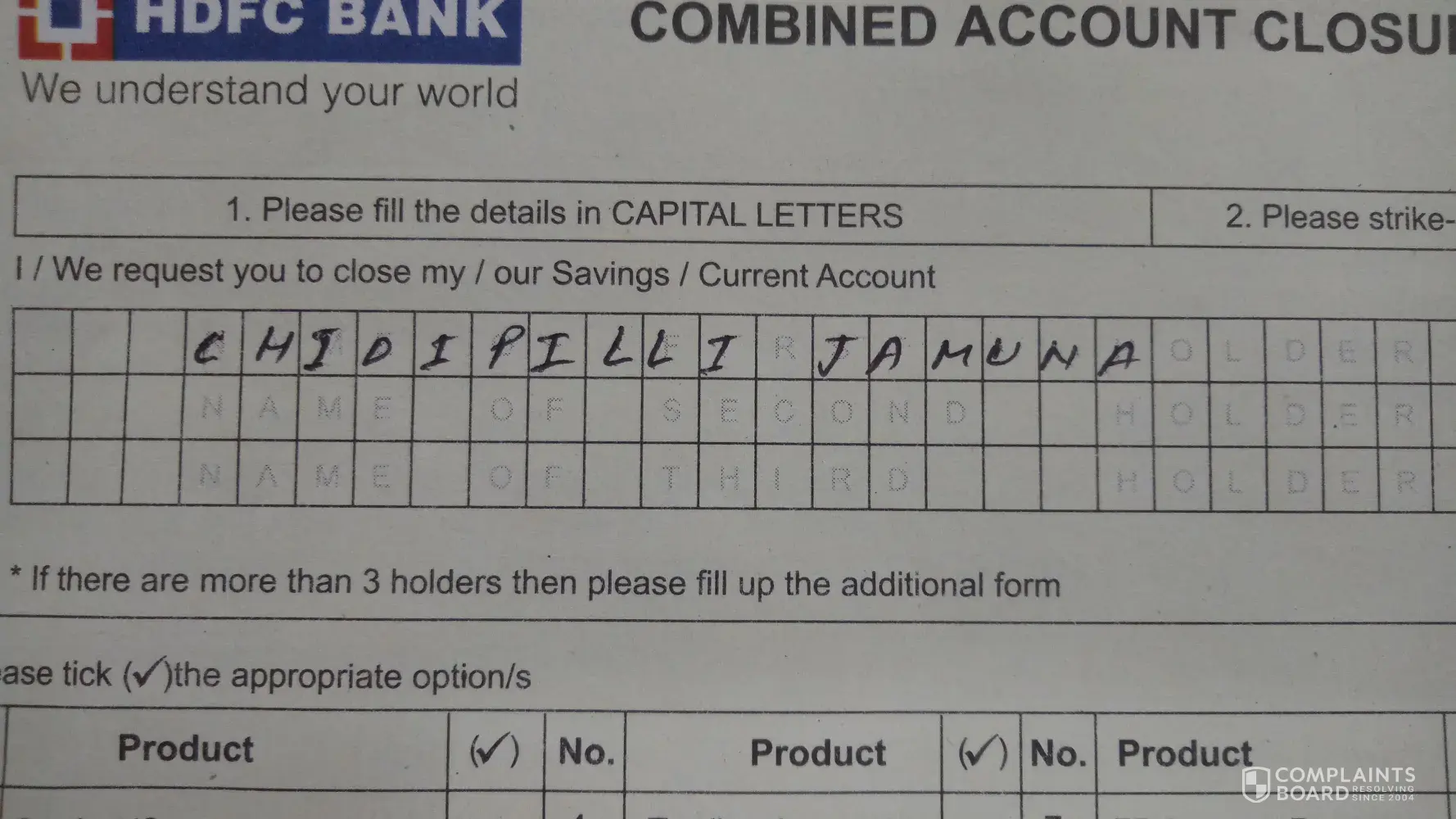 I have given my 5 family savings account to close after misbehave of hdfc bank staff asked me to go out of his branch. i have given on dated 25/10/2019 but till now they did not closed my savings account