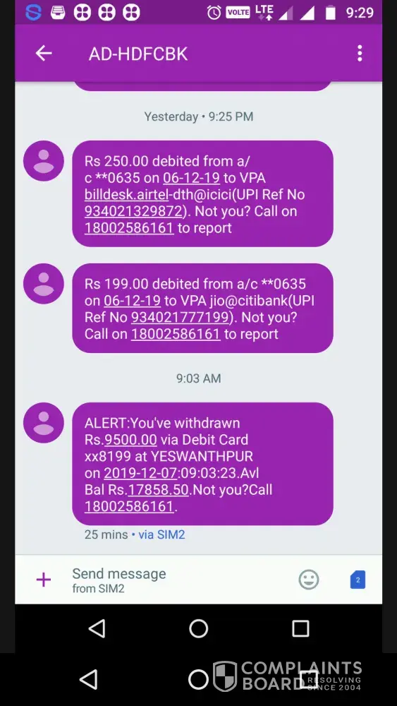 Hamare account se 607.70 debit ho gaya ha is ke karan mai complain kar rha hu aapke bank ko hamare account ka sudhar jald se jald karo