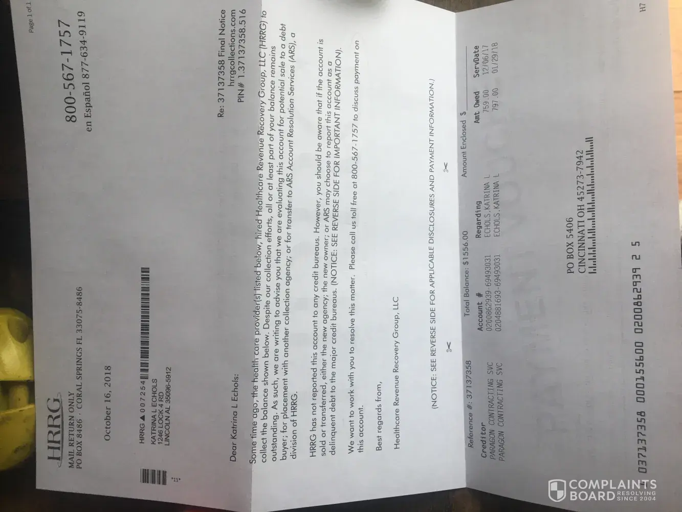Healthcare Revenue Recovery Group [HRRG] complaints: history and resolution overview