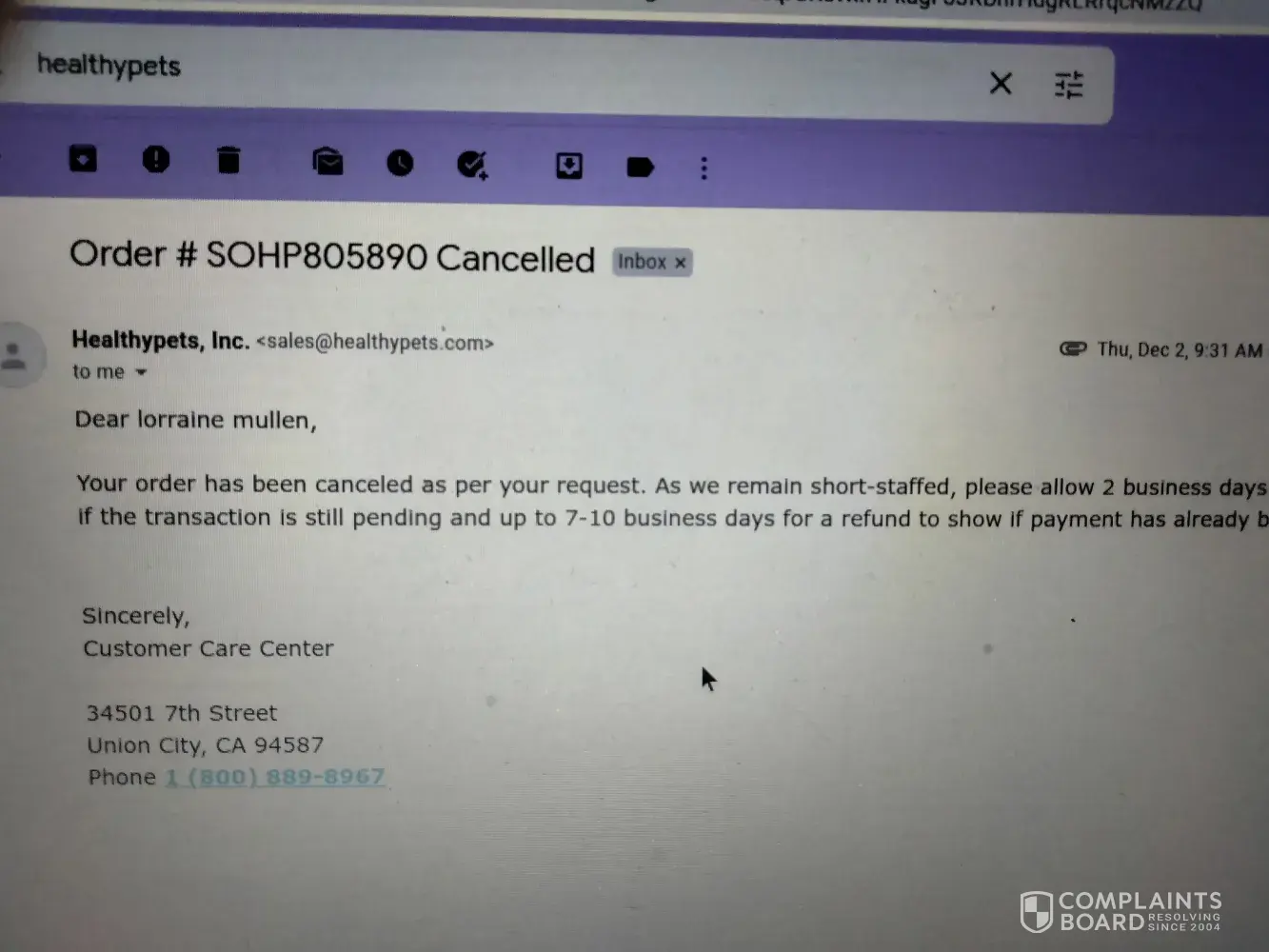 HealthyPets.com complaints: history and resolution overview