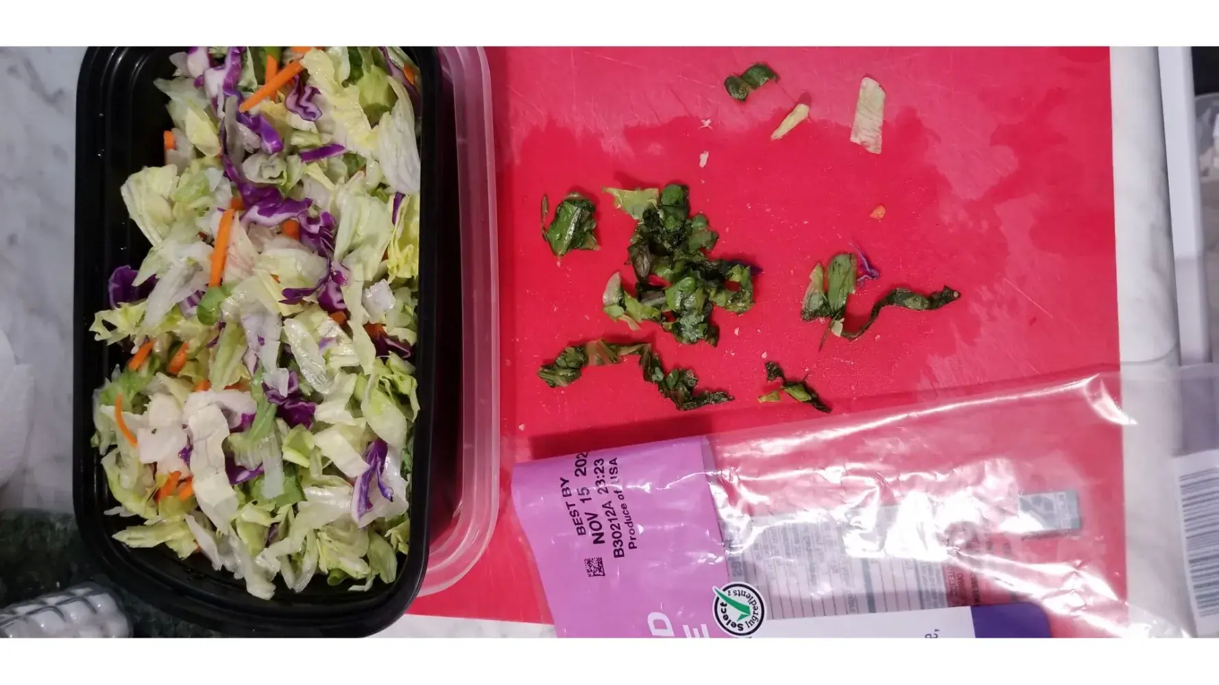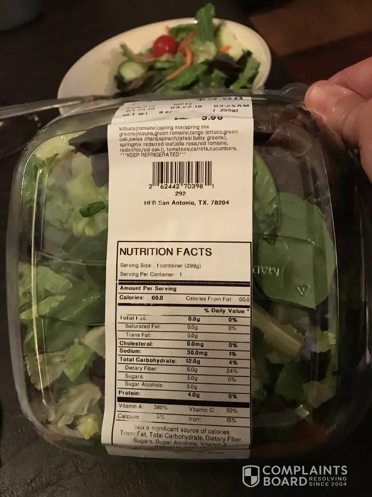 I purchased this today at MCreeles HEB as it would be consumed today. But I think the Green leaf was already wilted when it was added on your end. The sell by date is Nov 15 2022. *other info-B30212A. I had to pick it all out of the salad to the test of it from looking bad. This is not acceptable. I expect more from HEB.