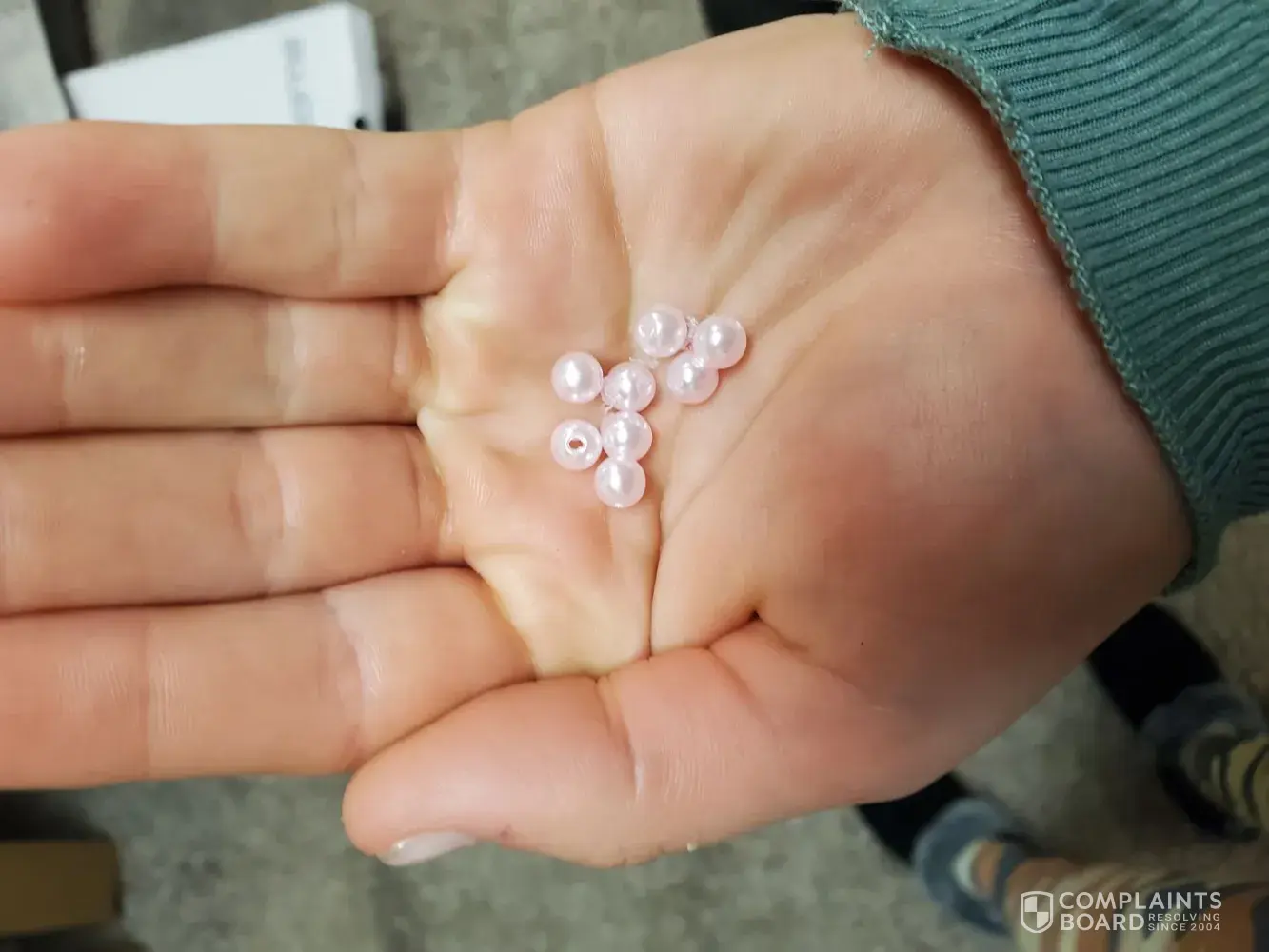 We immediately requested a refund. They asked for pictures. We submitted several of where the pearls had fallen off, plus a hand holding all of the pearls.
