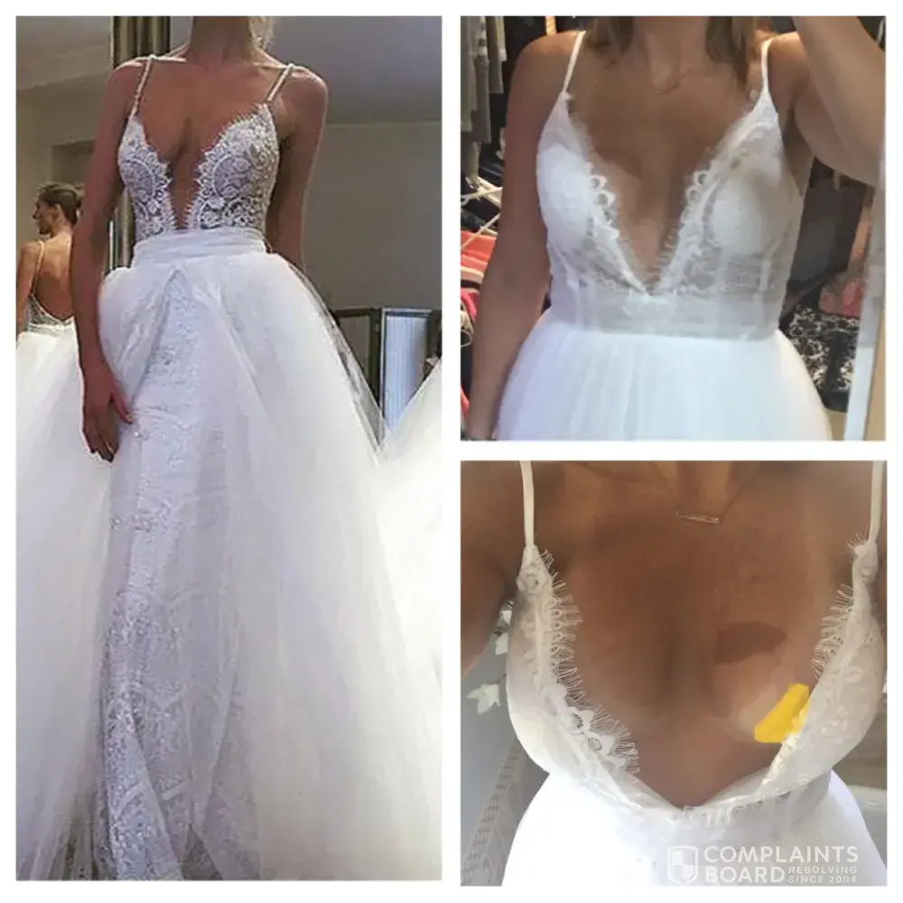 I am so so disappointed with how this company is handling this. I purchased this dress for my wedding coming up in november 2019. I realize the dress was only $200, but it is nothing like the picture. I figured how bad could the dress be? It is the worst. The way I am able to describe it doesn't come close to the let down in person. The quality of the lace, the pattern on her chest, and the material of the dress is nothing like what is represented in the pic. It is a completely different dress. The material is very thick, stiff, and heavy.in the pic, it almost looks see-through, very light, and perfect for a beach wedding. The lace on the chest does not have the distinct and beautiful flower pattern. It came with just a generic cheap lace; similar to a child's halloween costume type of quality. When I kindly asked for a refund, (immediately after receiving the dress), they said no!. They replied with one sentence. They said there is nothing wrong with the dress. That's it. I will never buy from this company again> scam artists. I feel like I literally got robbed out of my money.