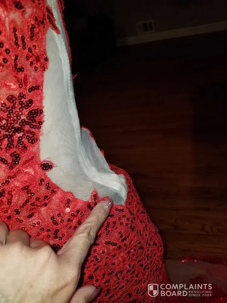 I was very skeptical about purchasing from this company. I should followed my instincts. Never the less we purchased this dress, after numerous conversation with a customer rep on chat. who assured we would get a dark red dress, we received a poor quality bright red, see through dress with a horrible netting and deformed zipper. The company said the color differs under different lighting. well no it does not.