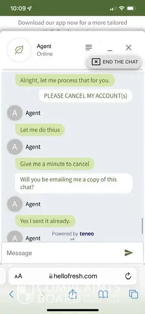 well hello! guess what hello fresh did? i had put a hold on all weeks because of the heat and the first week was fine. The next week i look at my bank balance and see hellofresh for 25 dollars Urg. I thought i had put this on hold. I discussed this with Jenna after finally getting a number, not an email address. She said she could not do anything about it, even though the "food" was not out of processing and definitely not into shipping. Ok. Fine I am out 25 dollars. I did get a run around and i wanted to know if i would be charged anymore since it was a special price over the span of 7 meals. she said I would not be charged anymore, and the account is cancelled. Hopefully, I will not need to complain anymore. sorry no photos.