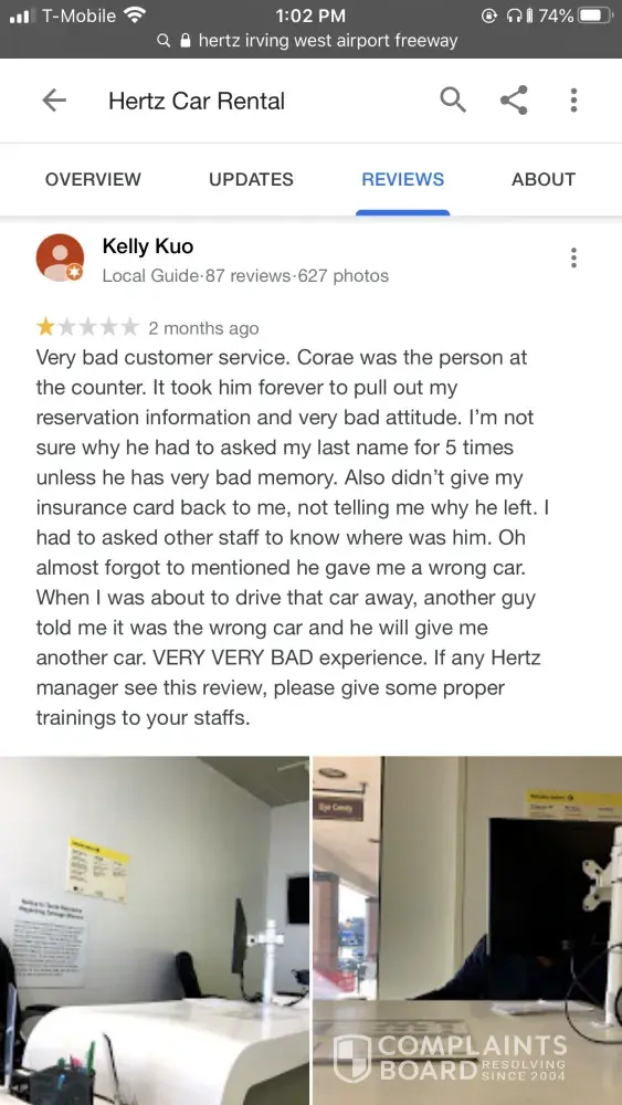 This is fror the 3401 w airport fwy, irving texas location. I went to get a rental reserved for me on behalf on my insurance company, horrible place. I went to Hertz due to recommendation of the insurance company that I have been dealing with for the repairs of my car. I was given Corae, he asked for my drivers license and with that I handed my insurance...