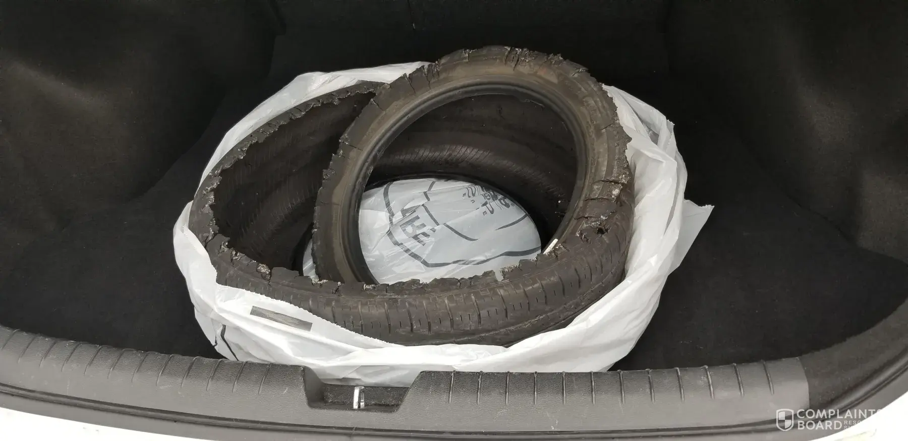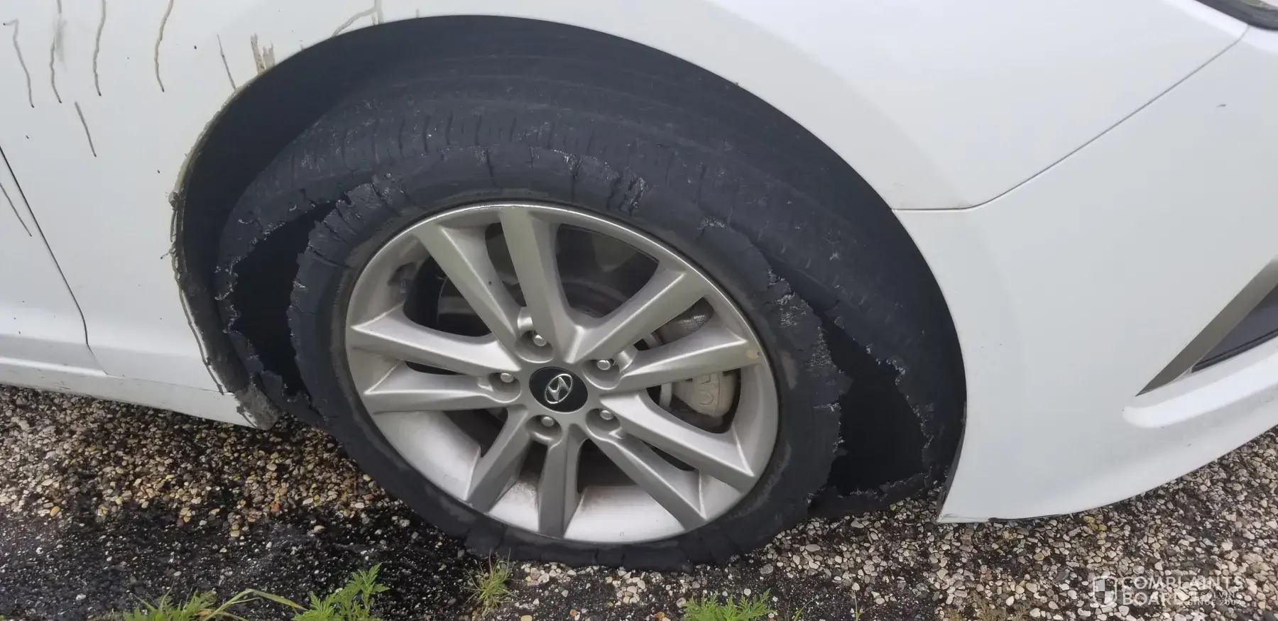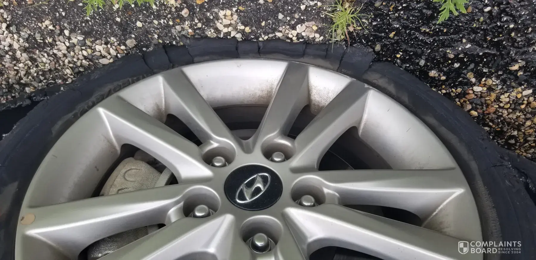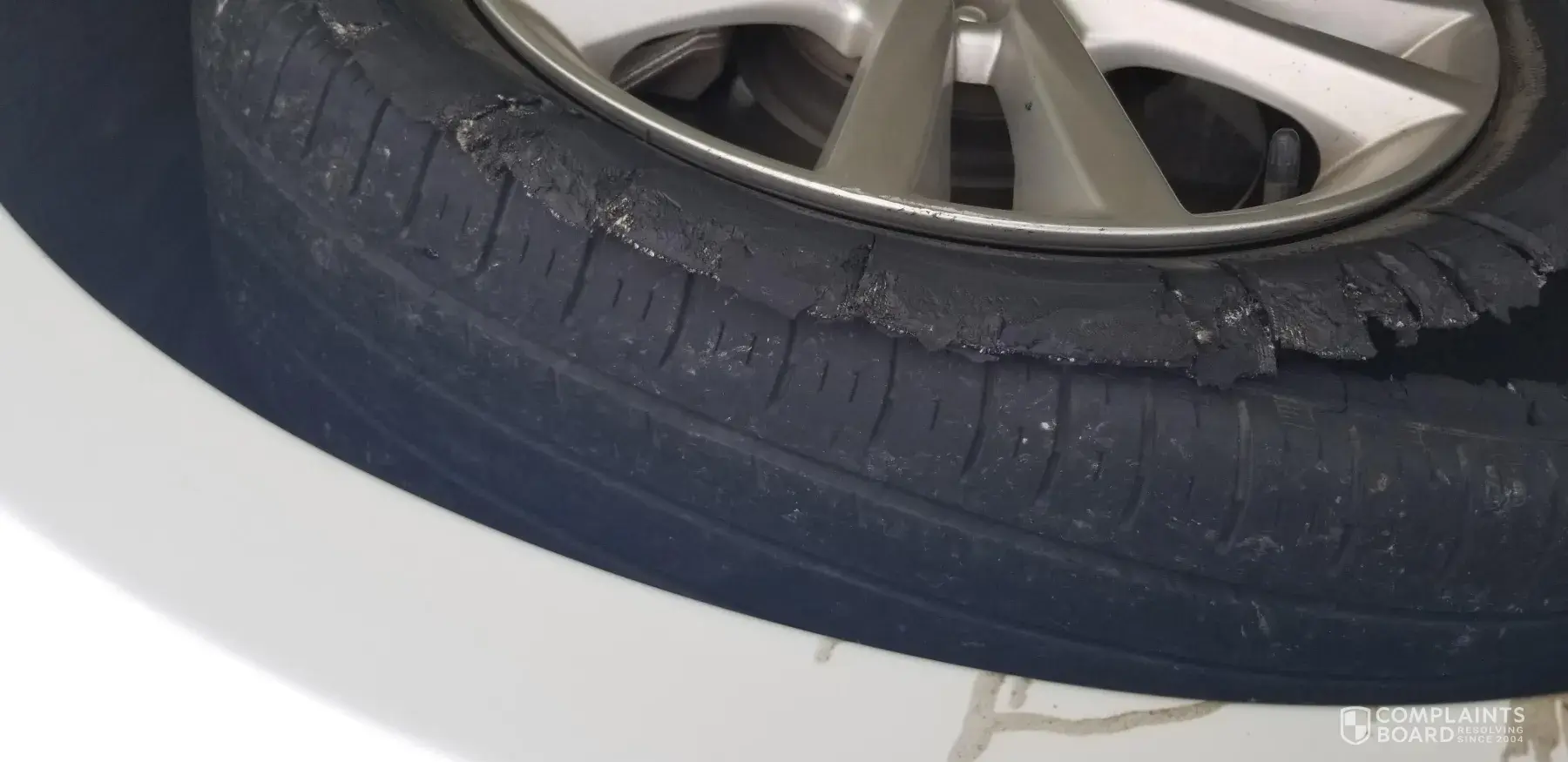 On 7/18 in the middle of Freeway, Tire was exploded as pictures attached. I called road side service and they told me it is my responsibility so I called Fargo location and they told me to call road side service. None of Hertz their did not even help me at all. Due to the reason, I called my AAA and towed the car to the nearest Hertz which is Aberdeen, SD Airport. That location was closed even it was like around 3 o'clock and won't open till Friday. I had to ask AAA to replace the spare tire but that spare tire was not able to drive more than 50 miles. Next closed Hertz location was Sioux Falls, SD airport which is about 150 miles away. AAA recommended me to replace to tire to get to Sioux Falls so I had to replace the tire. According to the condition of tire which was mounted to the car, I don't think it is my fault and deserve the reimburse for those cost. I attached invoices. I also returned original tire with the car so you Sioux Falls location must have it, too.