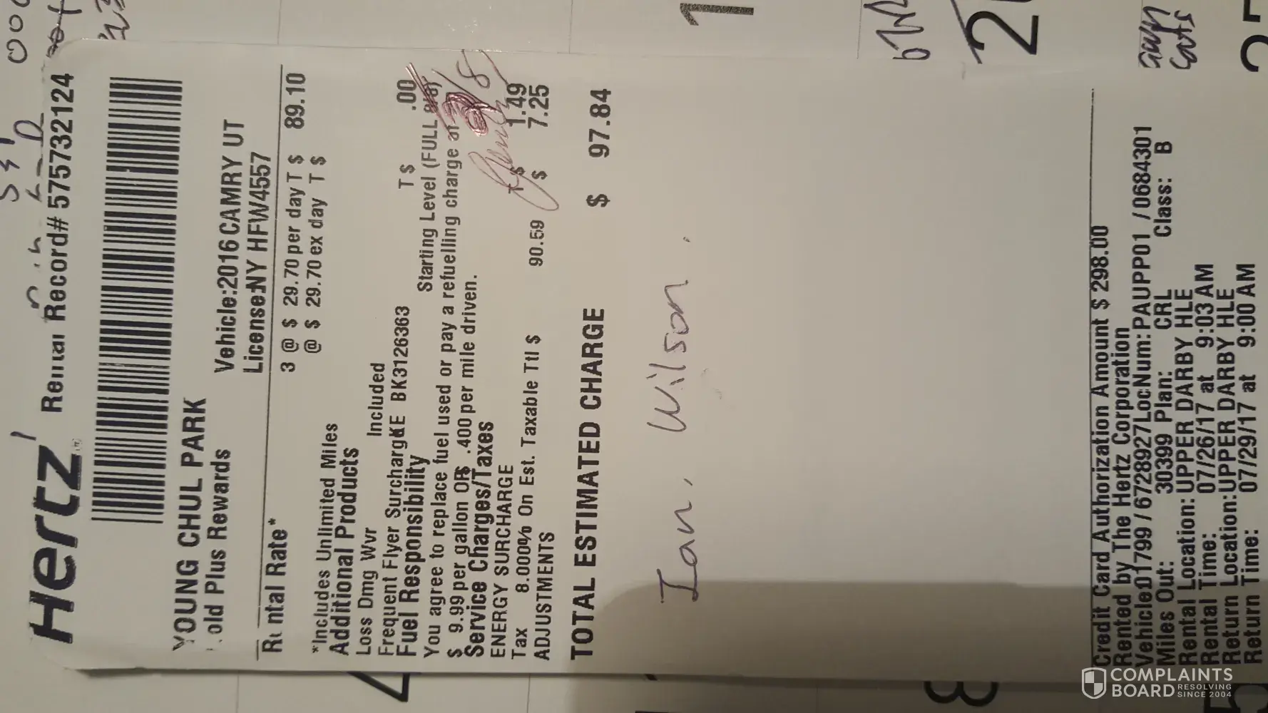 Hello there! This is Javon Eldridge. I rented a car, from the Fort Wayne location. I never received a bill. But they overcharged my card. I have proof that the car was returned the day before. You can call me at [protected]. It was July 3, 2017. Hertz Rental car. I was charged 60.00 more than rental should have been. I've called the 800 number at least twice