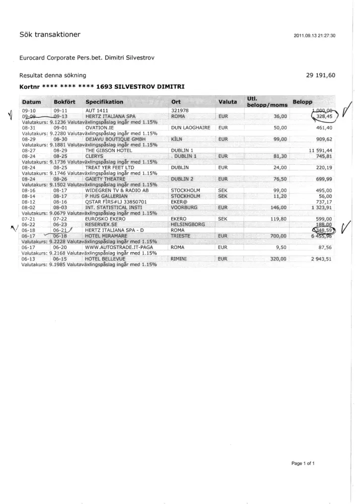 This bill, 36 EUR, was paid from my Eurocard on 21/06/2011.