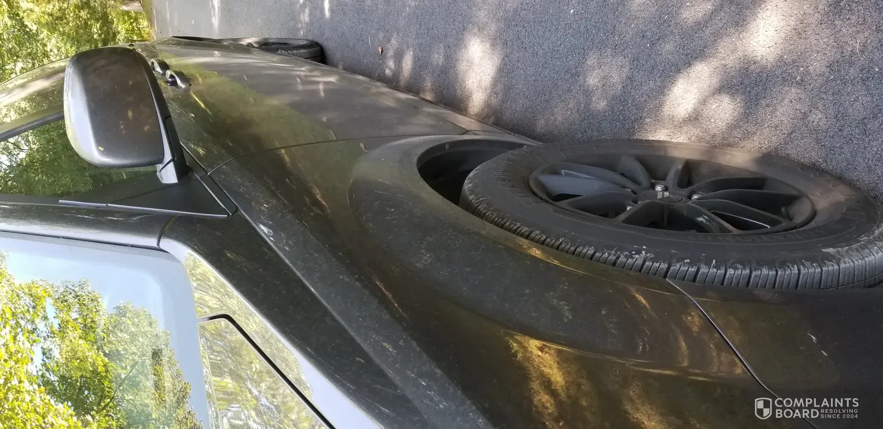 Incident was 9-8-21. On interstate 10 riding while traveling, there was a noise and then a flat tire. AAA came to change the flat and stated the tire had been plugged before and the plug came out. We took the tire to be fixed and it could not be fixed; the tire was no good. We purchase a used tire in order for us to continue during our rental. Our vacation was ruined.