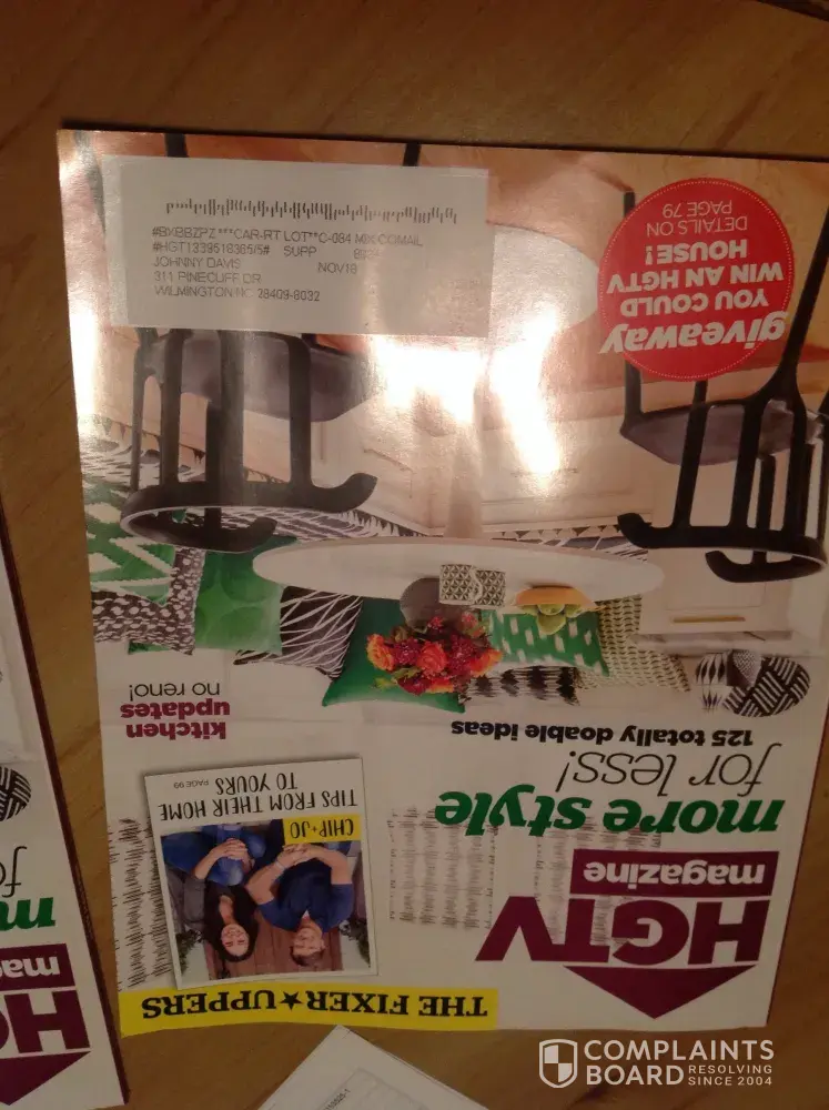 HGTV unordered magazine subscription