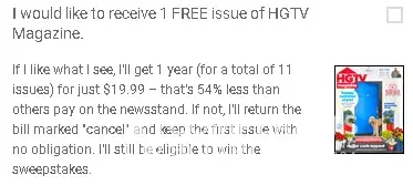 False claim of HGTV Magazine subscriptio