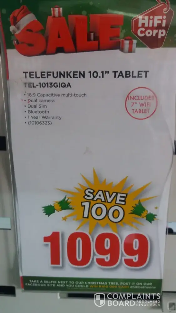 I saw an advert in store that has 10inch tablet that includes a 7inch wifi tablet for R1099 but when I was suppose to pay I was told its not available but I stil have the advert, I tried speaking to the manager but was dismissed.
