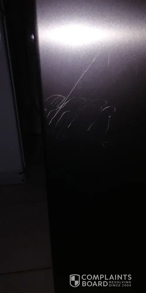 They asked for a blanket. I gave it to them. They removed the door handles to make the job easier for them. As soon as they pushed the fridge in I complained and showed the the scratches at the bottom of the fridge then they suggested that I buy a pray from Hifi Corp which will remove those scratches. I asked them again what the solution to this problem is! They never even once suggested to take it back to the supplier all they wanted to do was to push the fridge inside the house.