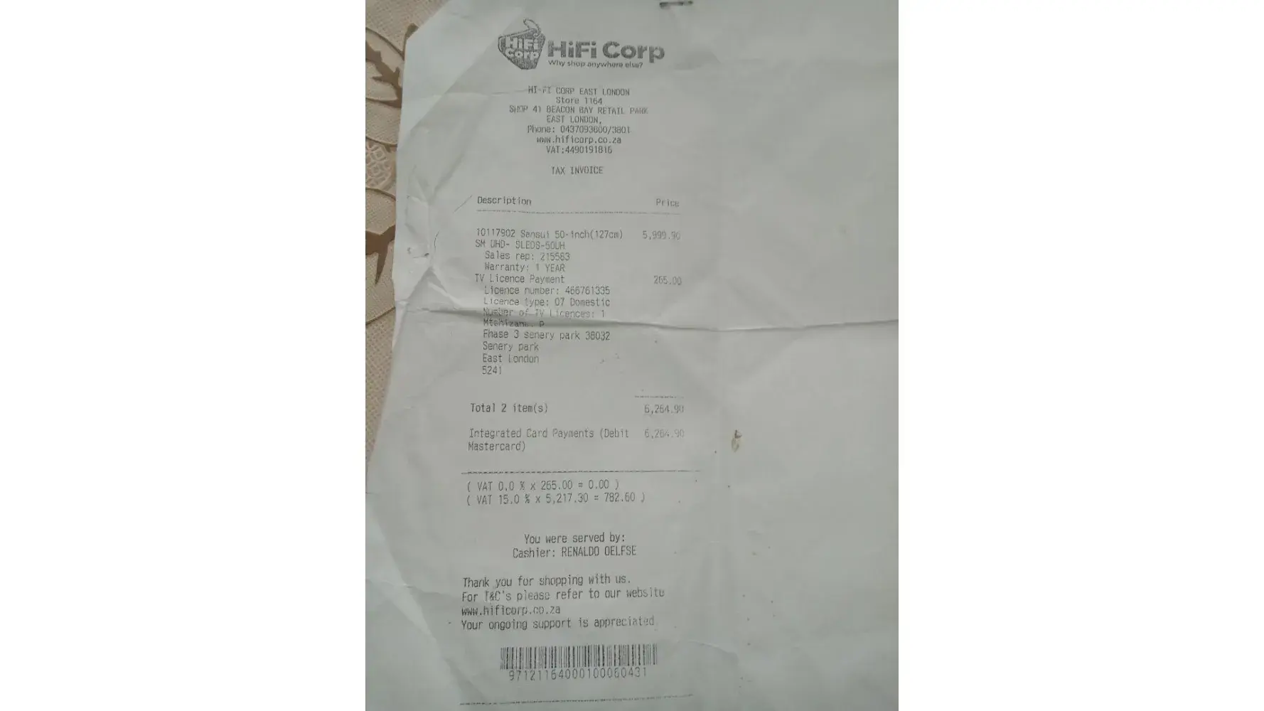 My complaint is for the HIFI Corp online service. My husband purchased a TV on 26 November 2021 using my TV license number. We received an email on 3 December 2021 from HiFi Corp to say "We're pleased to let you know that your order has been picked, packed and is reserved" with a order number to track. When I try to track the order, it tells me "Sorry we could not find order. Please check details and try again". I called the call centre (which rings for at least 30 mins before it is answered every time). Eventually I got through and we stated our issue. We were given the email addresses for Anele Ngwenye, Susan Mostert, Beniter Mkhabela and Katlego Nkadimeng but none of them reply. We were informed that there was an issue with the order as the person who purchased the TV (my husband) had a different ID number as the TV license holder (me). We asked them what steps to follow to correct this and they didn't reply. We emailed a follow up and they didn't reply. We called to the call centre again and spoke to Sindy Sibisi who said she would escalate it and someone would contact us. We are still waiting. I called this morning and spoke to another call centre agent who informed me he would escalate it. From his side he could see no escalation from anyone else prior. This is now really frustrating. According to him, the order is on hold due to no stock. Now what is getting on my last nerve is that first it was the TV license issue which we asked guidance for on how to fix. No guidance was received. Then we escalate it and there is no response. No response to emails. No response to any call requests or emails. Then we hear today there is no stock. So now we hear there is no stock of the item. We didn't even get notified of this. Is this how you treat customers? My goodness, I must say this service is beyond pathetic. I would never have expected this from such a reputable company and I am bitterly disappointed. The TV we purchased was very expensive and we have been customers here for years. If this matter is not handled in a satisfactory manner I will surely be reporting this company!