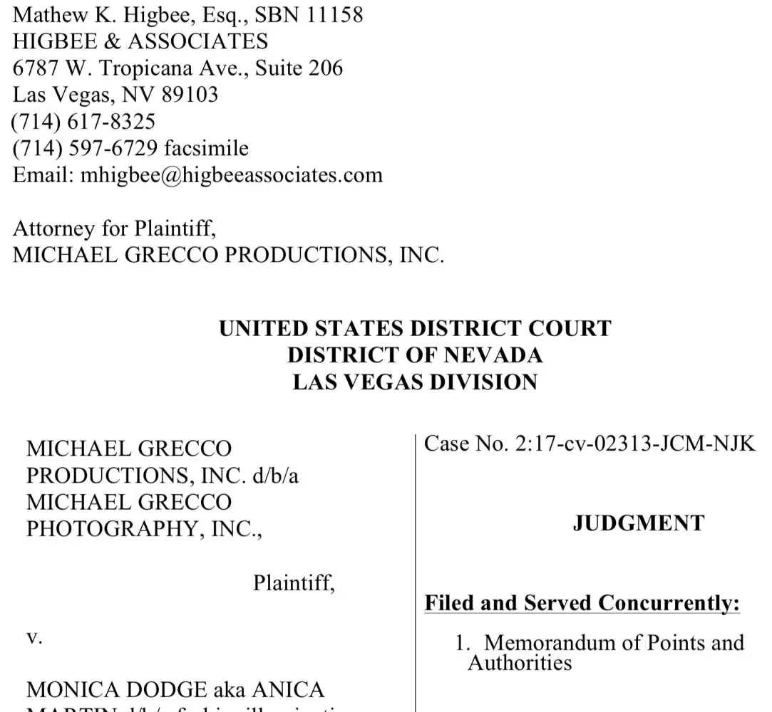Michael Grecco wins $45, 000 default copyright infringement judgement