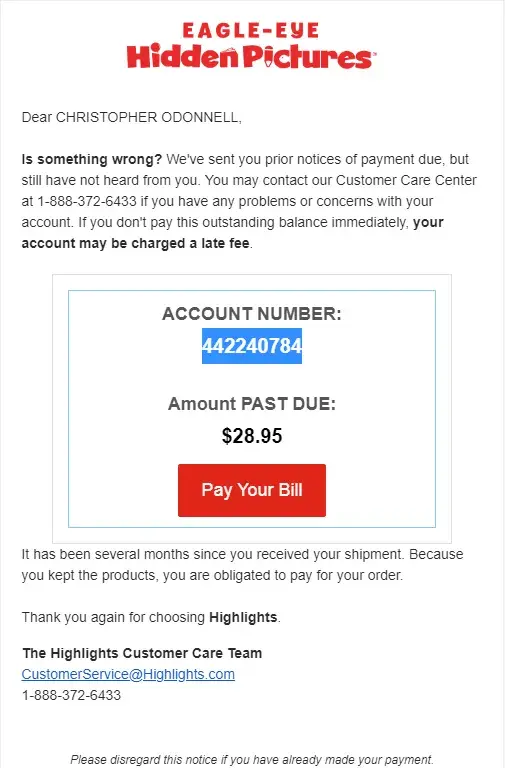 Highlights For Children billed me several times