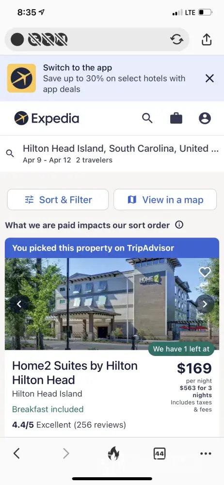 Desired outcome: We want a confirmation of room at Home 2 Suites for 4/9 through 4/12/22