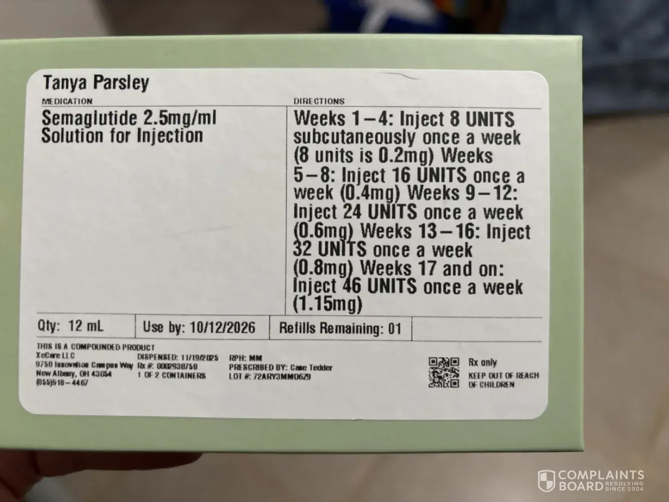 I did not ask for more of this product. It makes me nauseated. I didn’t lose weight on it. I wanted the tirzeptide instead. I did not open any boxes of the semiglutide. I want to return this immediately. RX 0002030750 or it could be 002930750. The print is too small. I don’t have any other information. Tanya Parsley 3848 Williamson Branch Rd Vanleer TN 37181. 6154199654. I was billed for this product. And I can’t use it.