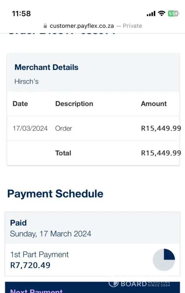 I have a problem with this Hirsch’s. They want to refund me of a payment which was made through Payflex a platform that helps consumers pay for products in installments. This is an exception because the order is still active on payflex and il continue to be debited when next installment comes while waiting for a refund and the retailer doesn’t understand that because of their terms and conditions which in this situation don't make any sense.