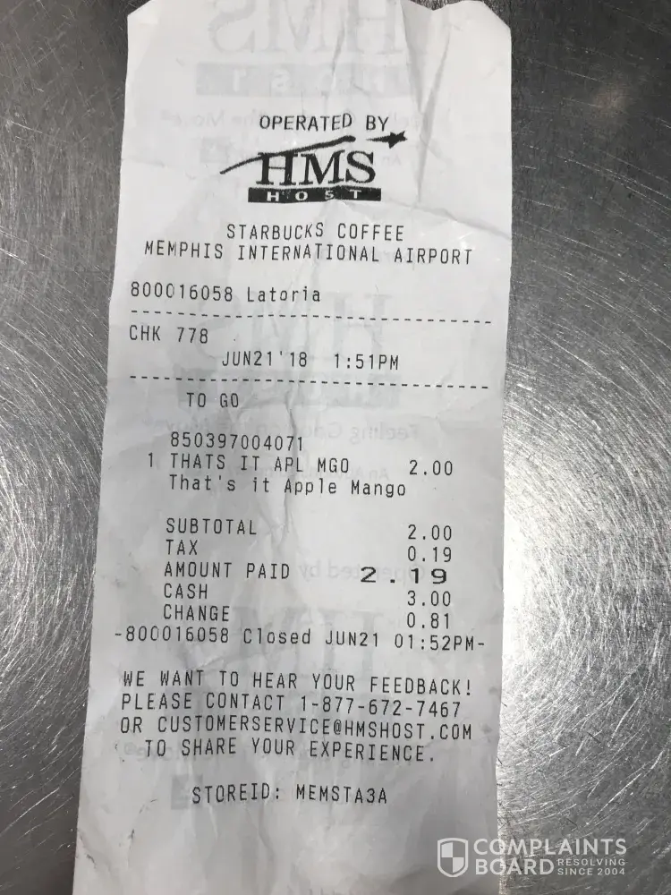 HMSHost earns a 1.0-star rating from 0 reviews and 495 complaints, showing that the majority of travelers are dissatisfied with dining experience.