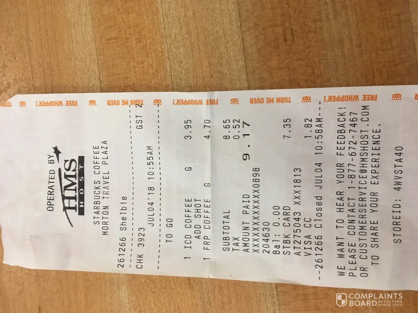 My wife and I stopped at the Morton travel plaza for a Starbucks ice coffee