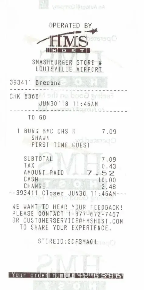 HMSHost smashburger @ louisville airport. store id# sdfsma01