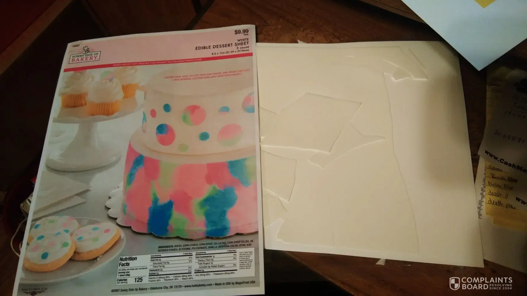 I purchased a 3 pack of Sunny Side Up edible dessert sheets. Expiration date on back Dec 21, 2022. These are the worse. First if all I tried to get the redeemable package opened gently so I would not cause damage to the sheets. When I finally got it opened the sheets was broken...not just one but all 3. When I tried to remove them they was so tight in the package they would not slide out through the redeemable opening which caused more damage. These sugar sheets 2as dry and very brittle. It says you can cut them? No way they just crumbled. Will never purchase these ever again.
