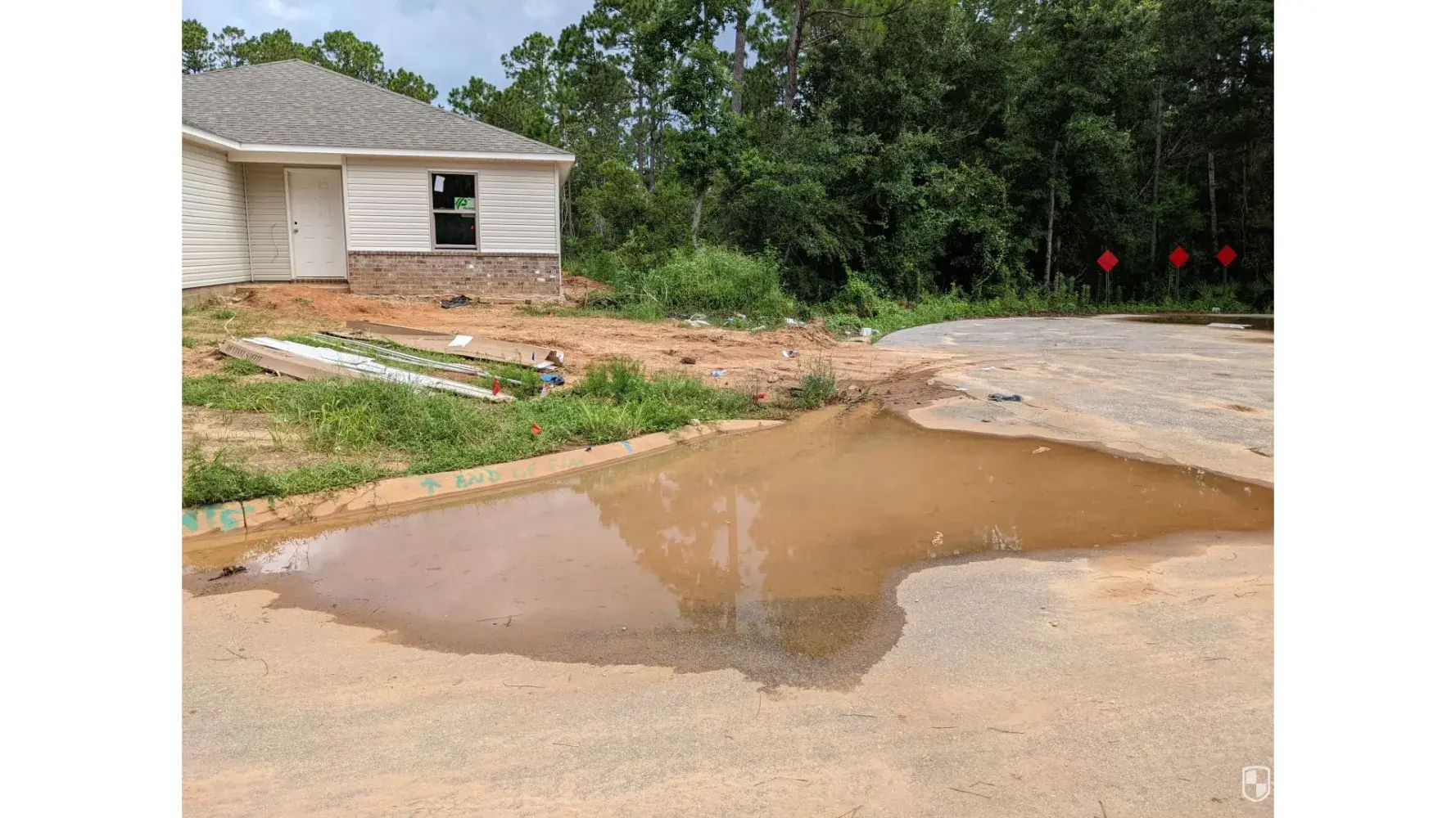 I purchased a new house on September 2nd, 2022 and the builder has left a puddle of mud in front of my house. Every time it rains or the neighbors use their sprinklers, the water settles in front of my house. I did not purchase a puddle of mud when I decided to buy this property. Holiday builders needs to make this right. They need to fix the street so it does not retain water and the water runs either into the retention pond at one end of the street or down into the storm drain at the other end. Holiday Builders is trying to pass the buck to the county and make them responsible instead of them doing what is right. Please make them finish the job that they started.