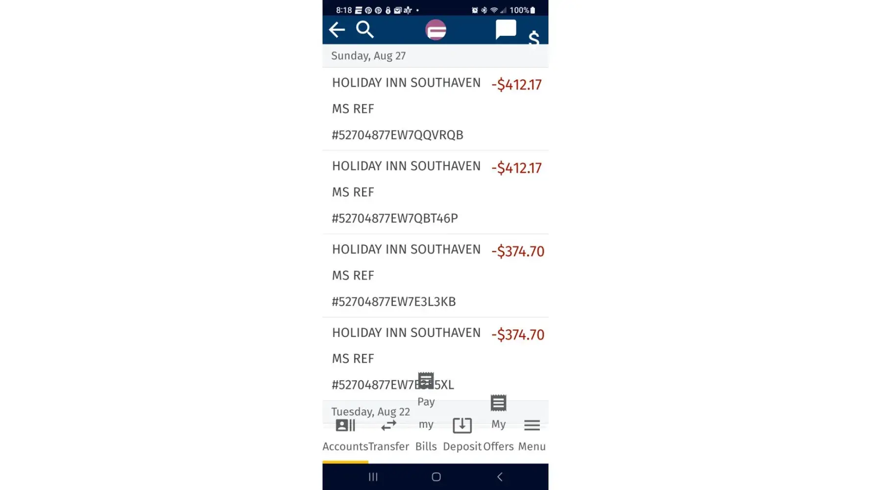 I provided my card for incidentals while staying at the holiday inn in southhaven ms. I stayed during the august 7 thru the 9th and should have only been charged the 39.44 for breakfast. However, I received charges of over $1,700 for periods I was not at the hotel. I have contacted the hotel and my credit card company to report these charges as fraud. These are some of the charges.
