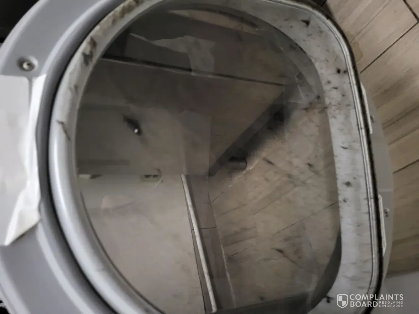I'm including pictures of damaged clothing, your damaged clothes drier, and pictures of shoes of one worker who left them near the trashcan at the front enterance.
