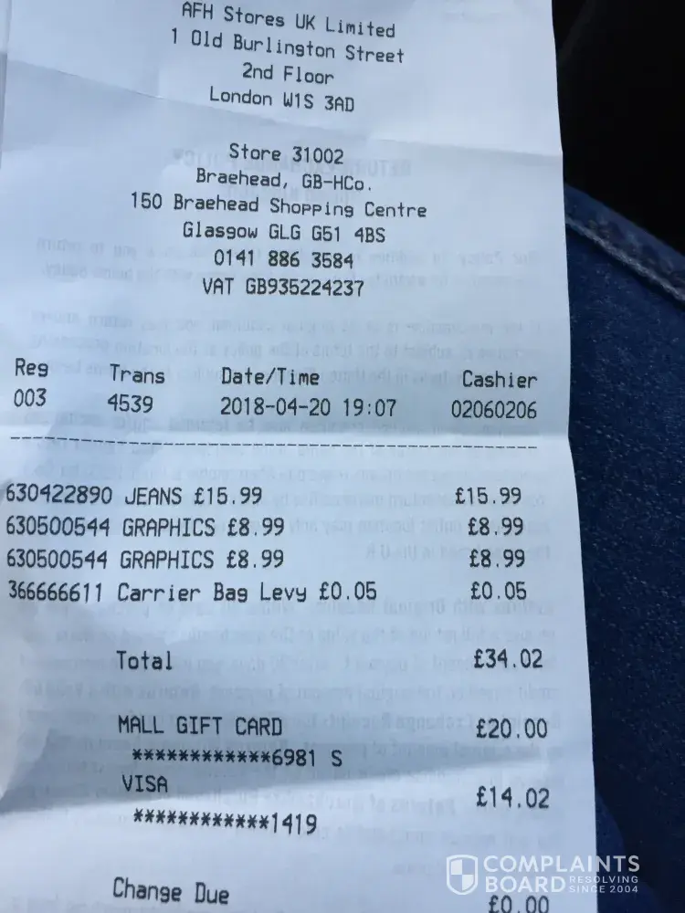 Having visited your Braehead/Glasgow store this evening, I was disappointed when I got to the checkout and was charged full price for 3 items which were advertised in the 3 for 2 section. When I queried this I was told that this offer had ended despite it still being clearly advertised. I told the assistant that this was false advertising but he said he was unable to do anything about It. It makes me very very wary of shopping in your store again and would like your feedback on this. No have taken a picture of the sign and have he receipt