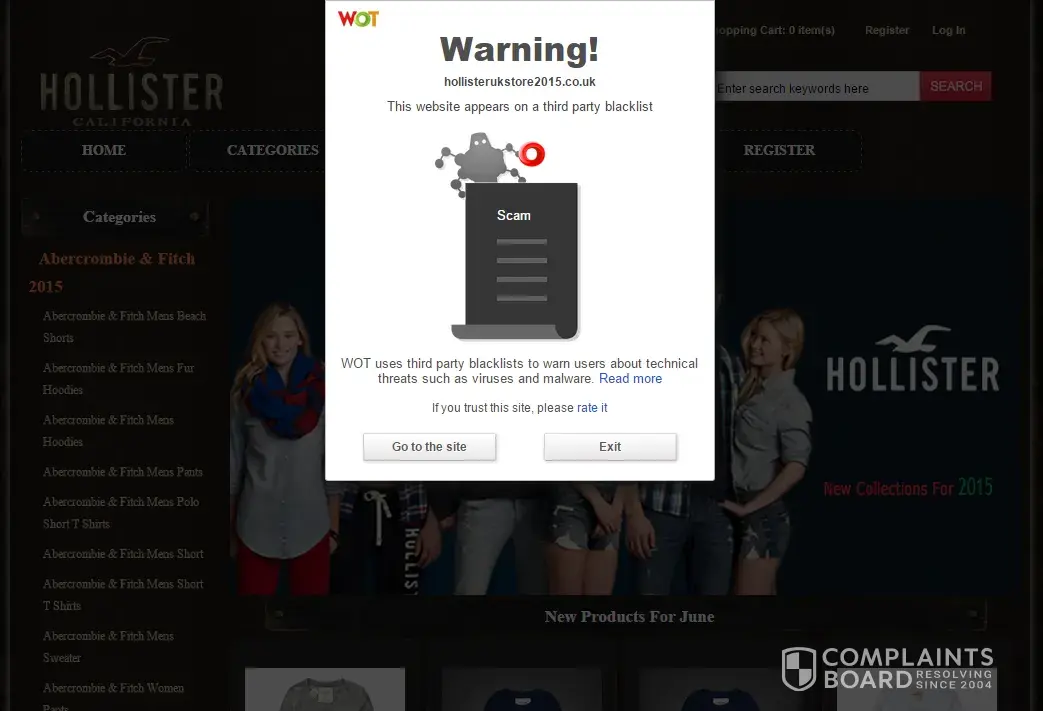 Hollisterstoresuk has also scammed me in to thinking it was the real hollister. i have lost out on money and the products have bee sent from China, therefore leaving me to pay the overseas charges.