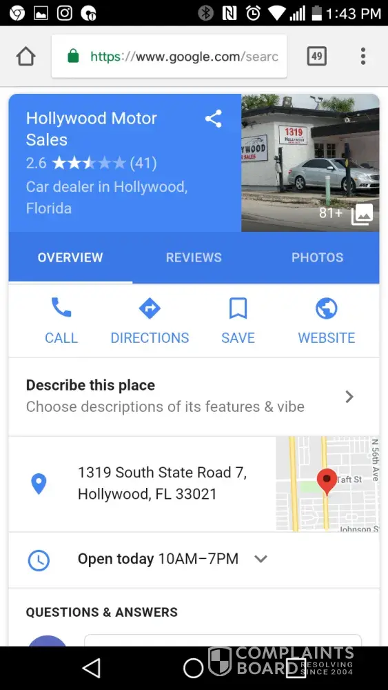 Plz any information you have on the hollywood motor dearlership located at 1319 n state road 7 Hollywood, fl 33020 report them to the Department of motor veichles [protected] located at 1135 Banks Road, Margate, FL 33063