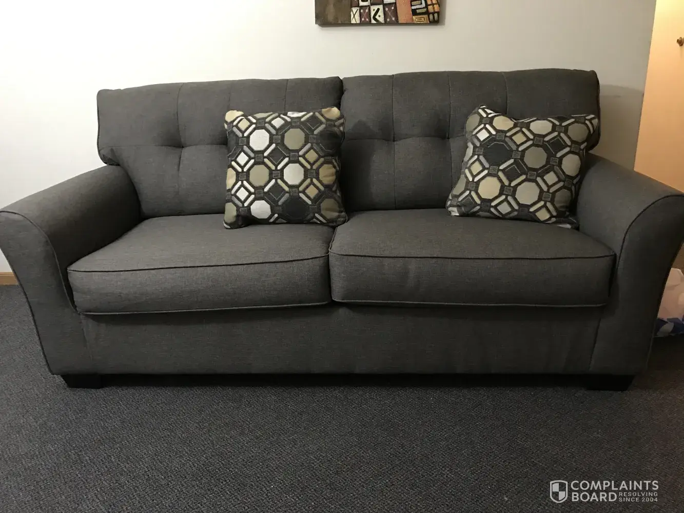I ordered a couch from them. I got my couch yesterday. It was wrapped nice . When I opened it I was shocked. It was a grey color. I ordered a brown color. When I seen this couch it was brown the Sales Consultant Rick said it will turn brown in the light. I'm so disappointed. It doesn't match my front room at all. This was my first BRAND NEW Couch for me and my son apartment. I'm SO, SO, So, SO VERY DISAPPOINTED.he lied so he can make a sale shame on him. I will never buy anything from there again.it is a high priced couch. It's' not worth it.