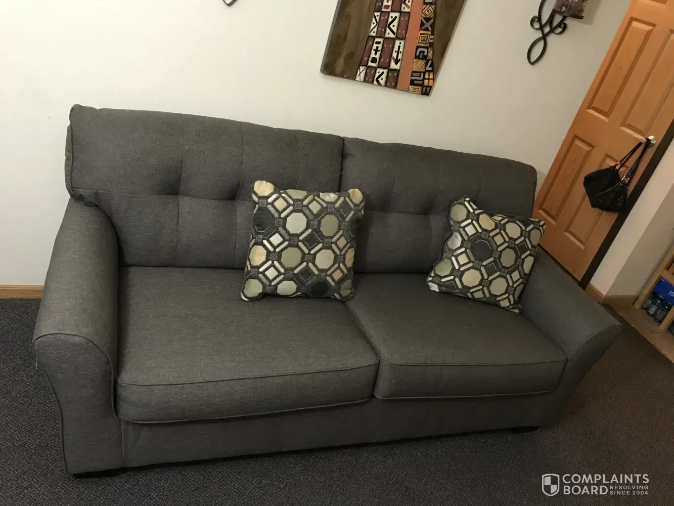 December 2019 I purchased three pieces of furniture two chairs one dogs, the sofa and one chair contained pillows totalling 5 pillows. I did not receive my furniture until June of 2020 I was told first covid-19 but later the second customer service person said it was sold to someone else, when I received the furniture I realized the pillows were filled with...