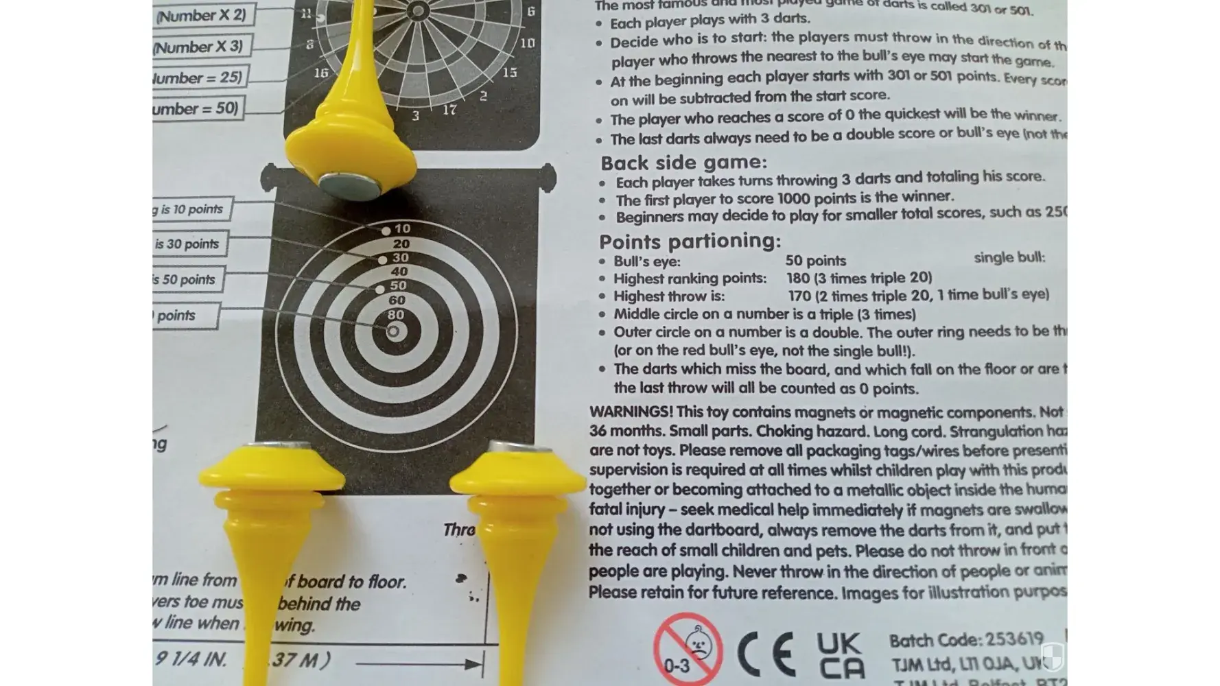 My son received the magnetic dartboard as a gift (25 June 2023). Upon opening it I realized two of the six darts were defective and not useable.