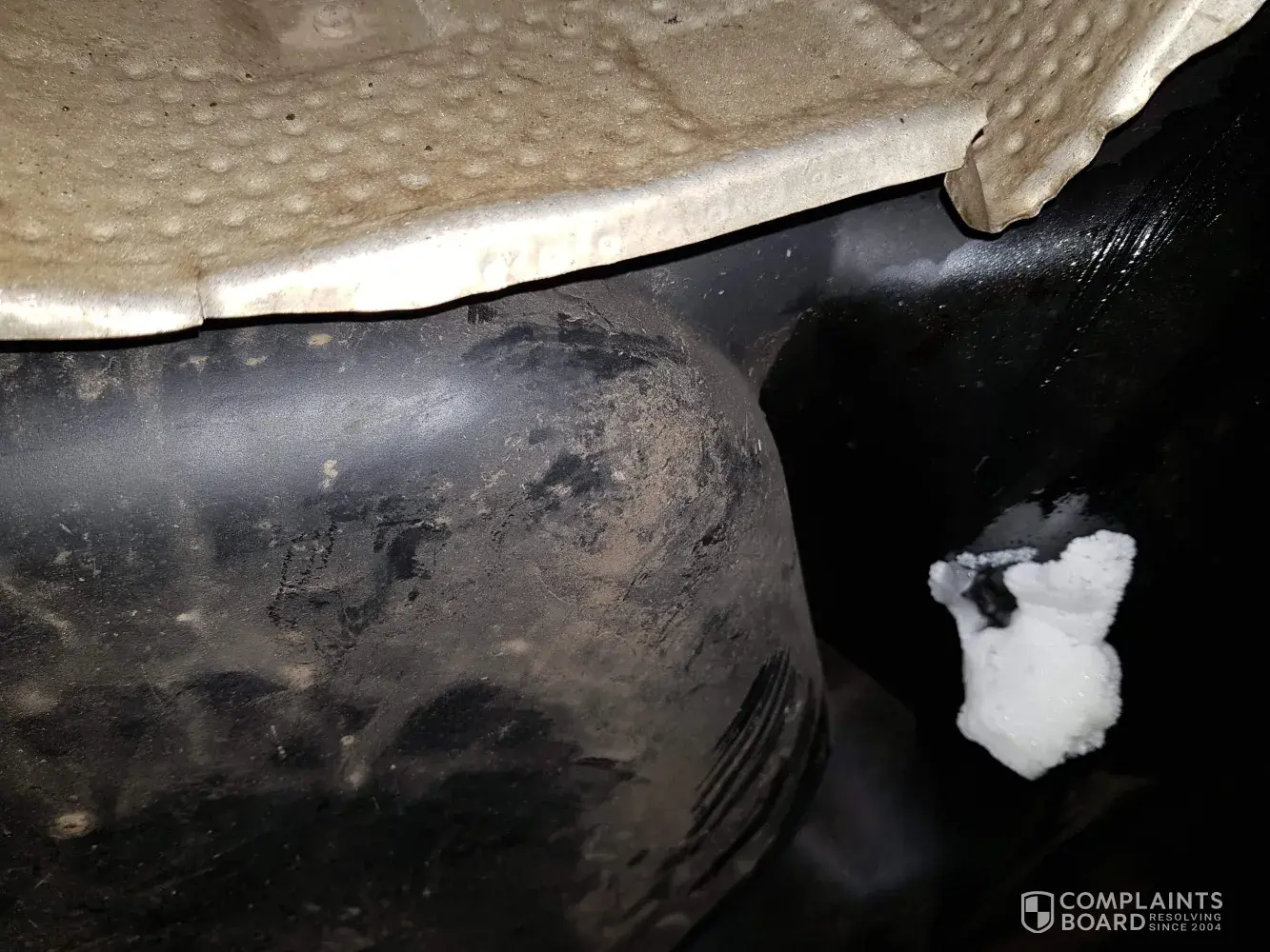 Damage to underbody belly pan of my car from loose kerb stone