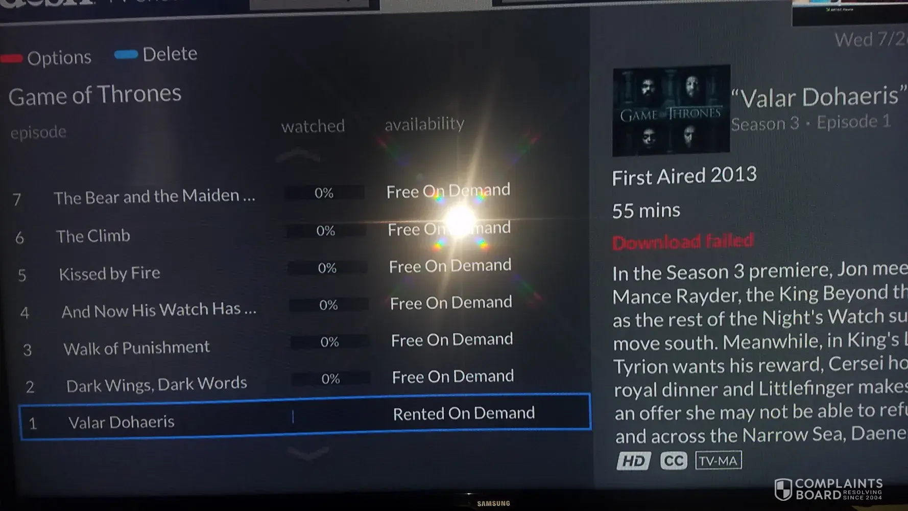 I spoke with dish and was told this is HBO not dish where the problem lies and since I can download All other shows on ALL other channels I believe this is true. Game of Thrones as well as other shows like Girls and Ballers are not downloading my wireless internet is running at 77.79 mbps and I spoke with my internet service as well so I know it's not my internet. My husband and I got so frustrated by this we ordered the box set of the series Game of Thrones so we could watch it. I would like to see the problems with downloading shows on your Network rectified or at least let the public know your working on fixing the problem.