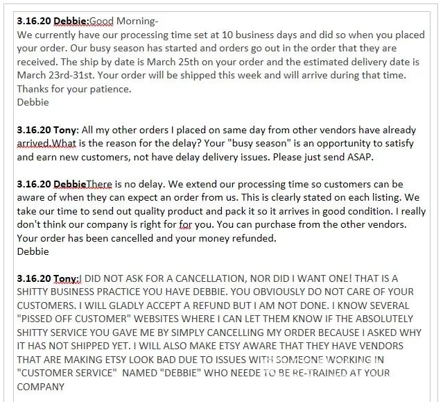 Read full complaint and 2 commentsFox River Nursery - cancelled my order for asking about delay
