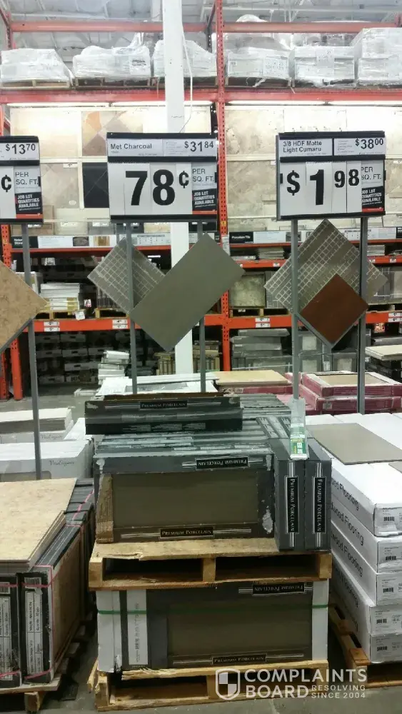 Price was listed incorrectly at 78 cent per square ft. When we asked to purchase 1600 square ft of tiles they said that the price was incorrectly listed and its $2 per square ft. They blamed it on the supplier that they have no responsibilities for the price listed. They will not honor the mistake and will give us $200 off which is not even 10% off the original price, we can get better price with our military discount. I was there for a whole hour speaking to incompetent work named Chris and Roberto. Store Manager is Frank at Lemon Grove Store. Called homedepot.com to talk to the district manager and they could not do anything to honor what they have advertise.