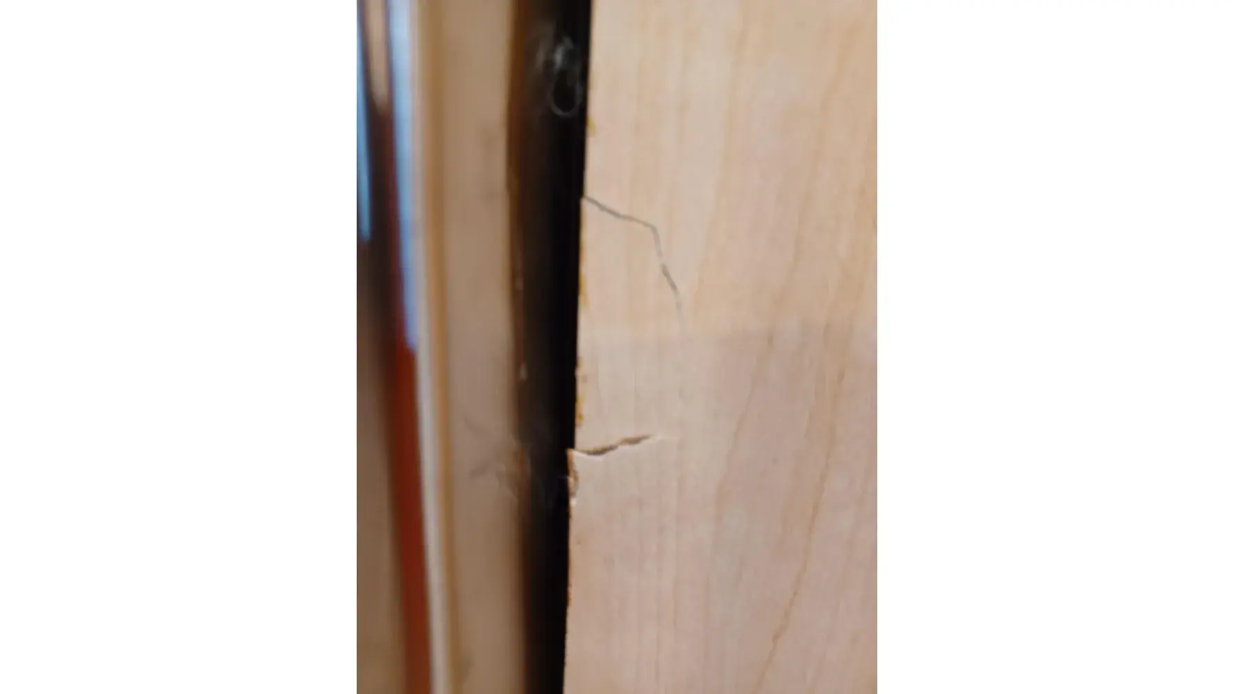 Installer forced the dishwasher into the opening, chipping the laminate on the right side.