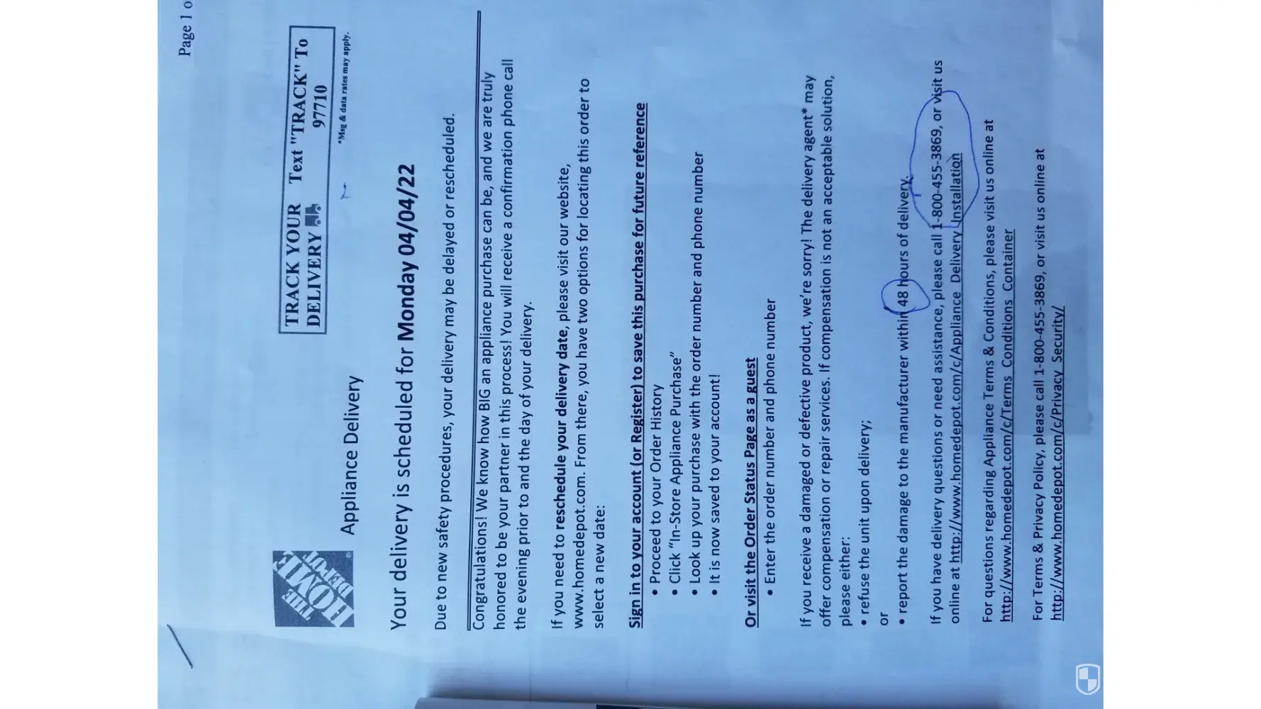 We called Home Depot - Helena, MT and spoke to "Dylan" who stated that someone else was also waiting for their delivery so it may be another hour or so for us to get our dishwasher but it would still be delivered.