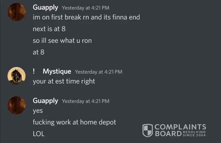 Desired outcome: I would like for him to pay the money he owes me or even better just fire him. He scammed me yesterday on discord 5/15/22 while I was helping him do his work he was at work and because I trusted him, I didn't think he would scam me.